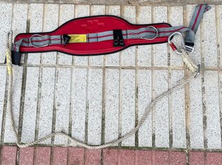 Se vende cinturón de seguridad ancho. Con cuerda y mosquetón. También se puede usar en el gimnasio.