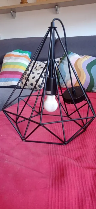 Lámpara colgante con un diseño moderno y geométrico. - Estructura de metal negro. - Bombilla LED incluida. Solo 10€, hago envíos.