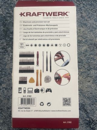 Set de herramientas de precisión KRAFTWERK. - Incluye 51 piezas. - Diseño compacto y portátil. - Ideal para trabajos electrónicos y de precisión. - Incluye estuche organizador.