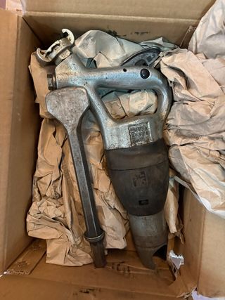 Herramienta neumática BM5 con cincel. - Incluye cincel. - Herramienta de aire comprimido. Usos: Este tipo de herramienta está especialmente diseñada para operaciones pesadas en los campos de la industria, la construcción o la fundición, como la minería de granito o bloques de mármol. Características: Tiene una alta fuerza de impacto y velocidad, y está equipado con un cincel para cortar. Especificación: Suele tener un método de inserción hexagonal de 19x50 mm, que se utiliza para reemplazar rápidamente el cincel.