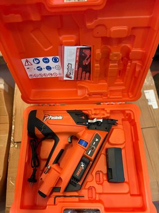 Clavadora Paslode IM90Xi Lithium en su maletín original. Clavadora Paslode IM90Xi, nueva en caja. Funciona con gas y batería de litio 7.2V, ideal para obra y carpintería. Incluye maletín rígido, batería, cargador rápido, manual y accesorios. Compatible con clavos RoundDrive de 2,5-3,1mm x 51-90mm.
