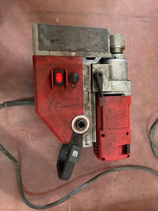 Taladro de base magnética Milwaukee MDE 41 con motor de 1200W. Diseñado para trabajos de perforación precisos y eficientes. Taladro de banco con base magnética marca Milwaukee, modelo MDE 41. Potencia: 1200W, 5.5A. Capacidad: Taladrado máximo Ø 41 mm. Características: Dos velocidades (475/730 min⁻¹), función AUTO STOP antideslizante, motor de alto rendimiento. Estado: Usado en condiciones profesionales. Funciona perfectamente, solo signos de uso normal (grasa/suciedad). Ideal para obra, chapa o metales.