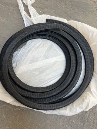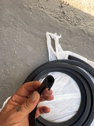 Goma negra para juntas, enrollada y lista para usar. - Material: Goma. - Color: Negro. - Textura: Diseño de espiga. - 3 metros