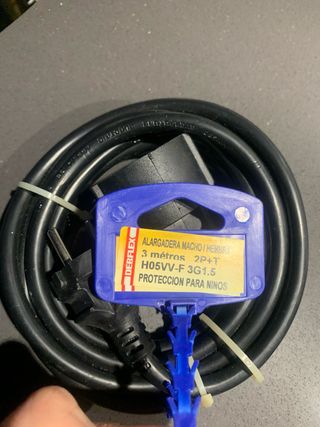 Alargador de corriente de 3 metros de longitud. - Tipo: Macho/Hembra. - Modelo: H05VV-F 3G1.5. - Protección para niños.