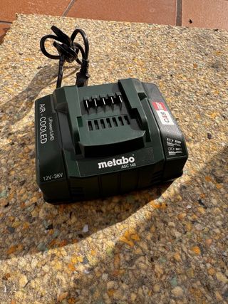Cargador rápido para baterías Metabo. - Modelo: ASC 145 - Voltaje: 12V-36V - Tecnología: LiHD - Refrigeración: Air-Cooled