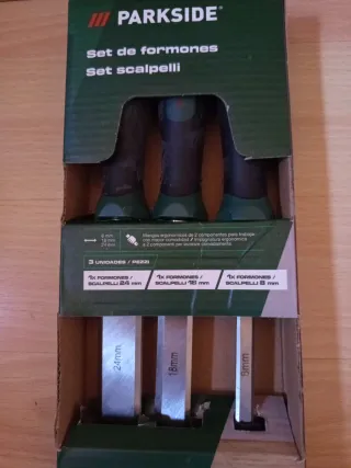 Set de 3 formones de la marca Parkside. - Incluye formones de 24 mm, 18 mm y 8 mm.