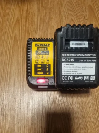 Se vende cargador Dewalt DCB115 junto con una batería recargable de ion de litio Dewalt DCB205. - Cargador modelo DCB115. - Batería modelo DCB205. - Batería de Ion-Litio. - Voltaje de la batería: 18V. - Capacidad de la batería: 5.0Ah 90Wh.