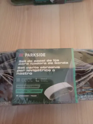 Set de lijas de banda de la marca Parkside. Vienen en su empaque original. - Lijas para lijadora de banda. - Set de 8 unidades. - Grano L (grosor).