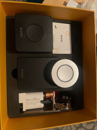 Cerradura inteligente Nuki Combo, modelo Smart Lock 2.0, con Bridge incluido. - Compatible con Apple HomeKit. - Compatible con Google Assistant. - Compatible con Alexa. - Incluye Wi-Fi Bridge.
