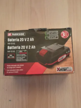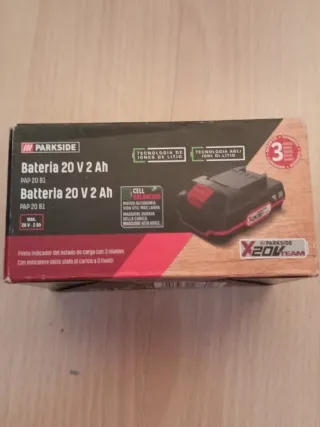 Batería de litio Parkside de 20V y 2Ah. - Tecnología de iones de litio. - Indicador de estado de carga con 3 niveles. - Mayor autonomía y vida útil.