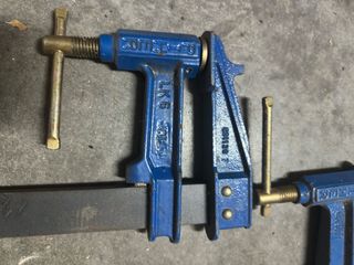 Se venden dos sargentos o gatos de carpintero, ideales para sujetar piezas. - Color azul. - Mango metálico. - Barra de sujeción.