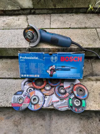 Bosch modelo GWS 13-125 CIE. Funciona perfectamente, le falta la empuñadura pero por lo demás todos perfecto. Diámetro de disco 125mm