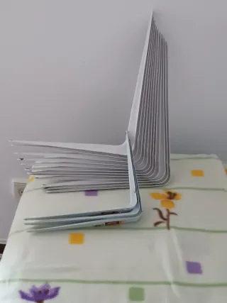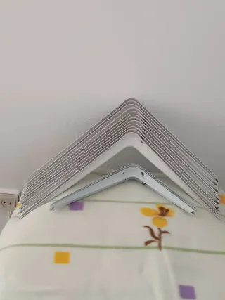 Lote de escuadras metálicas en color blanco y gris. - 12 escuadras de 35x30 cm. - 3 escuadras de 25x20 cm.
