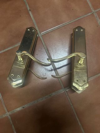 Juego de manillas de puerta de estilo clásico, - Diseño de manilla con placa. - Material metal - Acabado dorado.