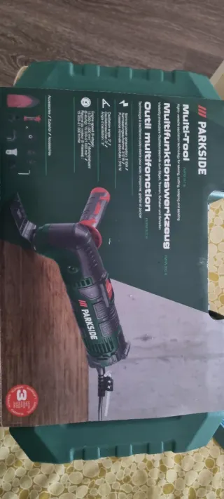 Máquina multiusos PARKSIDE PMFW 310 I6, nueva a estrenar. - Carcasa fabricada con 50% de material reciclado. - Tecnología de oscilación versátil para serrar, cortar, raspar y lijar. - 6 niveles de velocidad ajustables. - Práctico soporte para herramientas con fijación por tornillo e imán integrado. - Encastre universal para accesorios. - Canal independiente para aspiración externa de polvo. - Forma ergonómica con revestimiento suave antideslizante y cabezal de metal resistente. - Incluye 1 dispositivo de aspiración (2 piezas), 1 mango adicional, 2 hojas de sierra de inmersión, 1 hoja de sierra segmentada, 1 raspador de acero inoxid