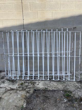 Reja de hierro macizo con barrotes retorcidos y detalles decorativos. - Material: Hierro macizo. - Diseño: Barrotes retorcidos y remates superiores. - Color: Blanco.