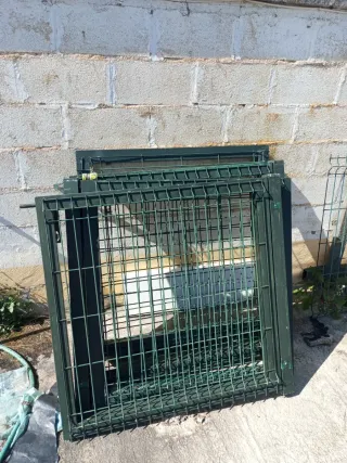 Se venden puertas metálicas para vallado, ideales para cercar espacios. Precio x unidad - Estructura de metal resistente. - Malla de alambre. - Diseño de panel. - Postes de soporte incluidos.