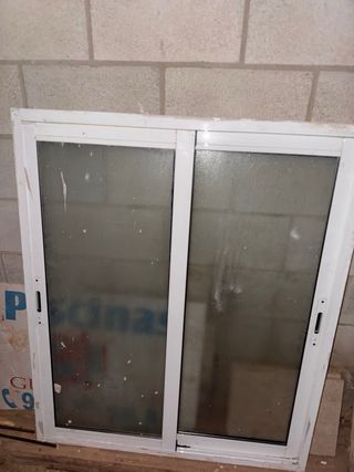 Ventana de aluminio con dos hojas correderas. - Medidas: 81 cm de ancho x 115 cm de alto. - Material: Aluminio. - Tipo: Corredera.