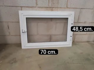 Ventana de aluminio con una hoja abatible. - Medidas: 48,5 cm de alto x 70 cm de ancho. - Material: Aluminio. - Tipo de apertura: Abatible.