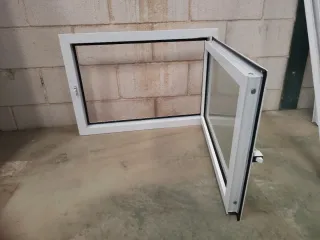 Ventana de aluminio de dos hojas abatibles, con unas medidas de 60x60 cm. - Material: Aluminio. - Medidas: 60x60 cm. - Tipo de apertura: Abatible. - Número de hojas: 2.