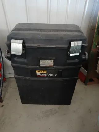 Carro de herramientas de la marca Stanley FatMax, ideal para organizar y transportar tus herramientas. - Color negro. - Asa para facilitar el transporte. - Cierres metálicos.