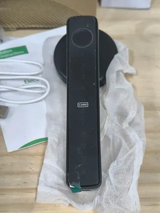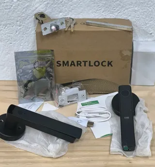 Se vende cerradura inteligente SMARTLOCK en color negro. Incluye todos los componentes para su instalación , solamente tiene un roce que se ve en la última foto
