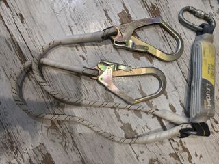 Sistema retráctil de seguridad anticaídas, diseñado para la protección en trabajos en altura. Incluye mosquetones y cable de acero. - Carcasa robusta de plástico. - Cable de acero con funda protectora. - Mosquetón de conexión con cierre de seguridad.cuerdas y mosquetones y arnés