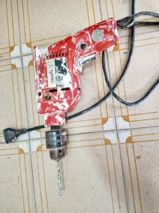 Taladro eléctrico de la marca Casals, ideal para trabajos de bricolaje y construcción. Eléctrico 540w - Color rojo con detalles blancos. - Mango ergonómico para un mejor agarre. - Portabrocas metálico.