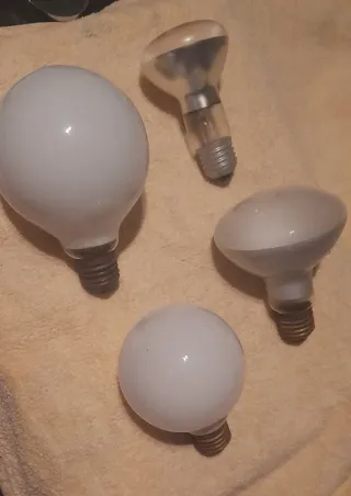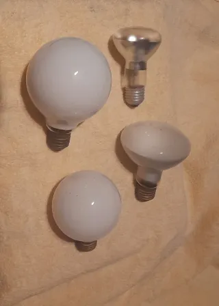 Lote de 4 bombillas potentes de 100W. Luz blanca. A 8 E cada una. Lote de 4 por 20 E - Bombilla globo blanca. - Bombilla reflectora. - Bombilla globo blanca.