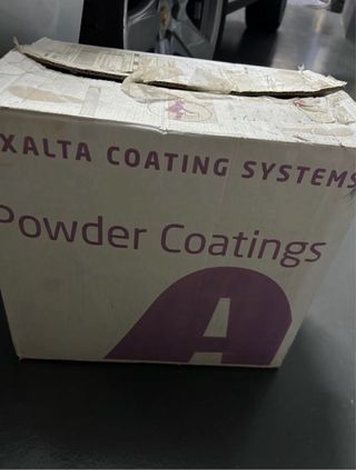 Pintura en polvo Alesta IP para uso industrial en exteriores, color gris plata. - Acabado: Semi-Gloss. - Peso neto: 15.0 Kg. - Brillo (@60°): 60 ± 10. - Lote: 4810436. - Fecha de fabricación: 03.202. - Duración: 36 meses.