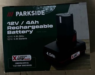 Batería recargable de ion-litio Parkside. - Voltaje nominal: 12V - Capacidad: 4Ah - Tecnología Li-Ion - Cell Balancing para mayor vida útil - Compatible con dispositivos X 12 V TEAM