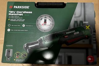 Trinquete inalámbrico PARKSIDE de 12V. - Modelo: PAR 12 B1. - Par máximo: 54 Nm. - Montura de herramienta: 1/2. - Velocidad de rotación sin carga: 250 rpm. -Incluye bateria 12v 2ah y cargador 12v 2,4ah