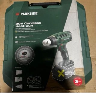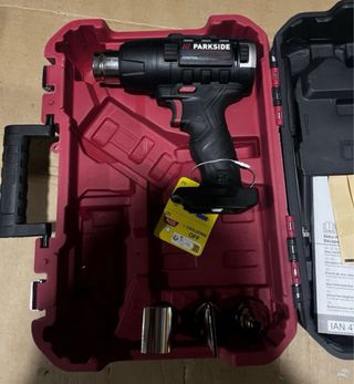 Pistola de calor inalámbrica Parkside de 20V. - Modelo: PHLGA 20-LI D3. - Voltaje: 20V. - Temperatura máxima: 550°C. - Caudal de aire: 170L/min. - Incluye accesorios. - Batería y cargador no incluidos.