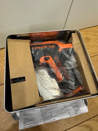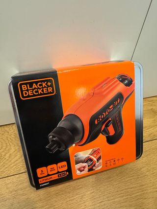 Atornillador eléctrico Black+Decker en color naranja y negro. - Incluye 8 puntas. - Batería de Litio 1.5Ah. - 5 Nm de par. - 180 RPM. - Luz LED. Totalmente nuevo. Sin usar