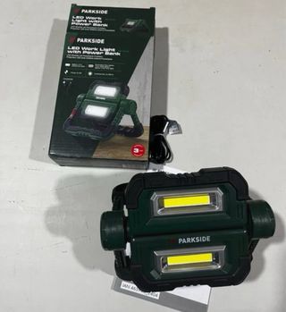 Foco LED PARKSIDE con función de Power Bank. Ideal para trabajos o exteriores. - Batería: 3.7V Lithium-ion (SAN). - Potencia: 2x 5W. - Flujo luminoso: 2x 500 lm. - Tiempo de iluminación: aprox. 3 hrs (ambas luces) / aprox. 5 hrs (una luz). - Incluye accesorios.
