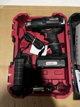 Pistola de calor inalámbrica Parkside de 20V. - Modelo: PHLGA 20-LI D3. - Voltaje: 20V. - Temperatura máxima: 550°C. - Caudal de aire: 170L/min. - Incluye accesorios. - Incluye cargador 20v 2,4ah y bateria 20v 2ah