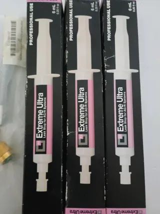 Lote de 3 unidades de Extreme Ultra, un sellador de fugas para sistemas de aire acondicionado y refrigeración (AC/R). Incluye un adaptador. - Profesional Use. - Contenido: 6 mL (0.20 fl oz) por unidad. - Diseño en jeringa para fácil aplicación.