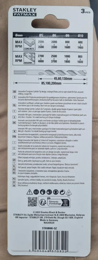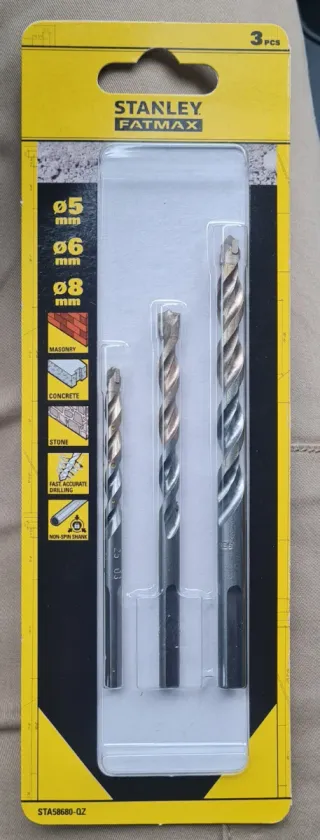 Lote 5 paquetes de brocas de pared Stanley Fatmax de 5, 6 y 8mm