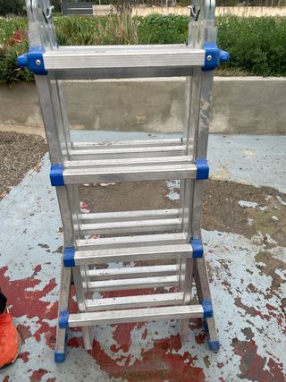 Escalera plegable de aluminio, ideal para tener en casa o para trabajos. - Material: Aluminio. - Diseño plegable para fácil almacenamiento.