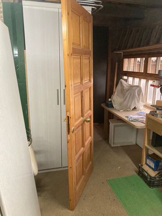 Puerta de entrada de madera maciza, ideal para dar un toque rústico a tu hogar. - Material: Madera maciza. - Diseño clásico con paneles. 211x82x4,5 Mecanizada Izquierda