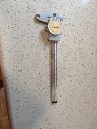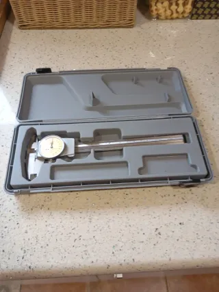 Pie de rey Tesa en su estuche original. - Incluye estuche de plástico gris. - Medidor con dial hasta 153mm