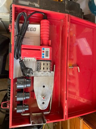 Soldador polifusor eléctrico para tuberías de la marca SUPER EGO. Ideal para trabajos de fontanería. - Color rojo. - Incluye maletín para transporte.