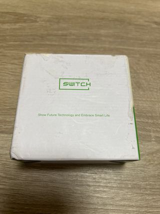 Interruptor inteligente con diseño moderno. - Logo SWITCH en verde. - Mensaje Show Future Technology and Embrace Smart Life.