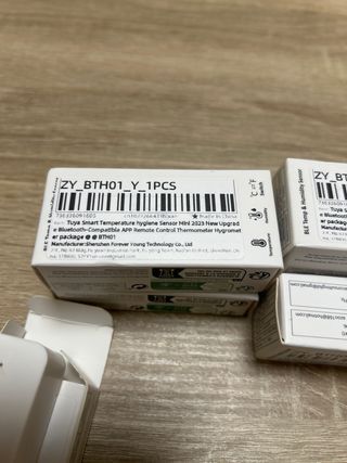 Se vende un pack de 6 sensores de temperatura y humedad. - Modelo ZY_BTH01_Y. - Conectividad Bluetooth. - Compatible con app Tuya Smart. - Indicador para todos los interiores