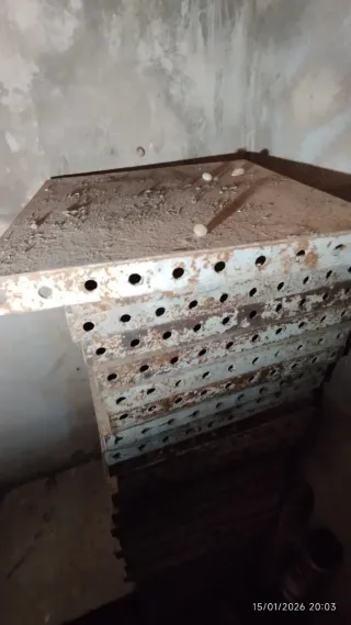 Se venden planchas de encofrar para columnas, fabricadas en metal. Son piezas de segunda mano, ideales para proyectos de construcción. 47 unidades de 50x50. 20 unidades de 60x50 - Material: Metal. - Uso: Encofrado de columnas. - Estado: Segunda mano.
