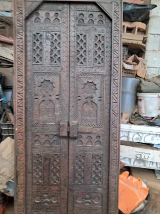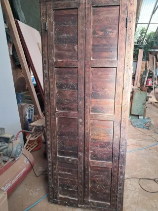 Se venden dos puertas de armario macizas de madera. - Material: Madera maciza. - Diseño clásico con paneles. - Tiradores blancos.