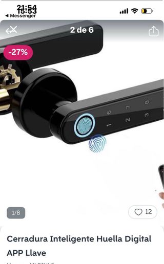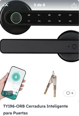 Cerradura inteligente modelo TY196-ORB para puertas. - Acabado en color negro. - Incluye dos llaves. - Compatible con app móvil.