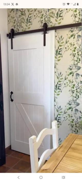 Kit completo + acabados de puerta corredera estilo granero para interiores. Su diseño moderno y color blanco se adaptan a diversos estilos decorativos. - Acabado en blanco. - Mecanismo de puerta corredera tipo granero. Es nueva y esta embalada con el diseño de la foto de la puerta blanca 82cm de ancho se vende porque se pidió por error