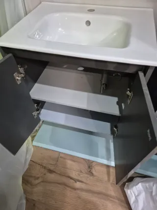 Mueble de baño suspendido con lavabo. El mueble es nuevo a estrenar quitado de exposicion. Se entrega con lavado de porcelana incluido. Mueble de calidad - Medida de 60 cm. - Diseño moderno y funcional. - Acabado en color gris oscuro.