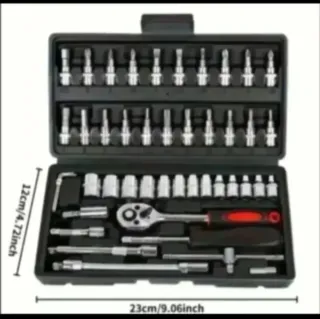 Estuche caja de herramientas de 46 piezas para trabajos y reparaciones del hogar, coche, moto, bicicletas, electricidad u otros. Incluye carraca, llaves de vaso, puntas destornillador plano, estrella y torx. 📝Para otras cantidades contactar.